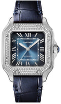 Cartier Santos De Cartier Medium Automatic Steel Diamonds Interchangeable Metal Leather Bracelets - W4SA0006